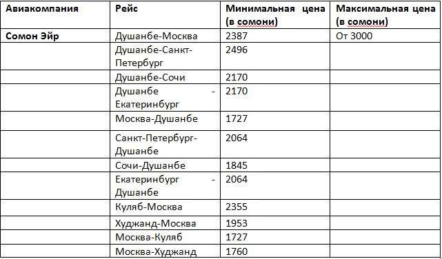 Анализ Цен на Авиабилеты Душанбе ⸺ Москва